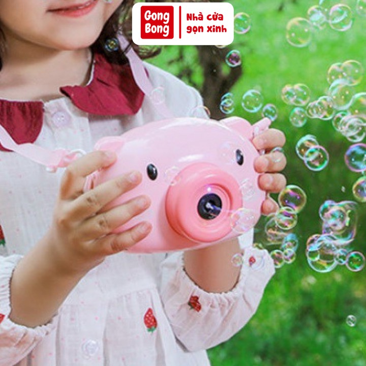 Máy thổi bong bóng xà phòng tự động hình máy ảnh heo hồng đồ chơi bắn bong bóng cho bé đáng yêu Gong Bong Store free ship
